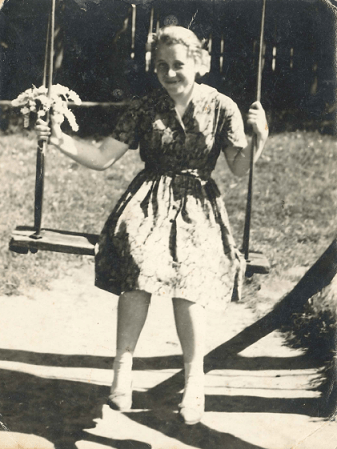 В июне сорок первого бабушка училась на курсах бухгалтеров в Ленинграде. Сразу после начала войны она сдала выпускные экзамены и пошла домой – пешком. Через несколько дней после того, как она пришла домой, в деревню вошли немцы. Уже в конце августа, ночью, немцы с черепами на фуражках вывели бабушку и её мать из дома и повели к церкви, где уже было много других людей. На бабушкиных глазах её мать и ещё несколько человек расстреляли за помощь партизанам. Бабушке было семнадцать лет. Она стояла и смотрела на тело матери, пока один немолодой немец – без черепа на фуражке – не положил ей руку на плечо и, возможно, сказал, geh, du arme Kleine. Бабушка ушла. На следующий год они с дедом расписались в немецкой комендатуре.