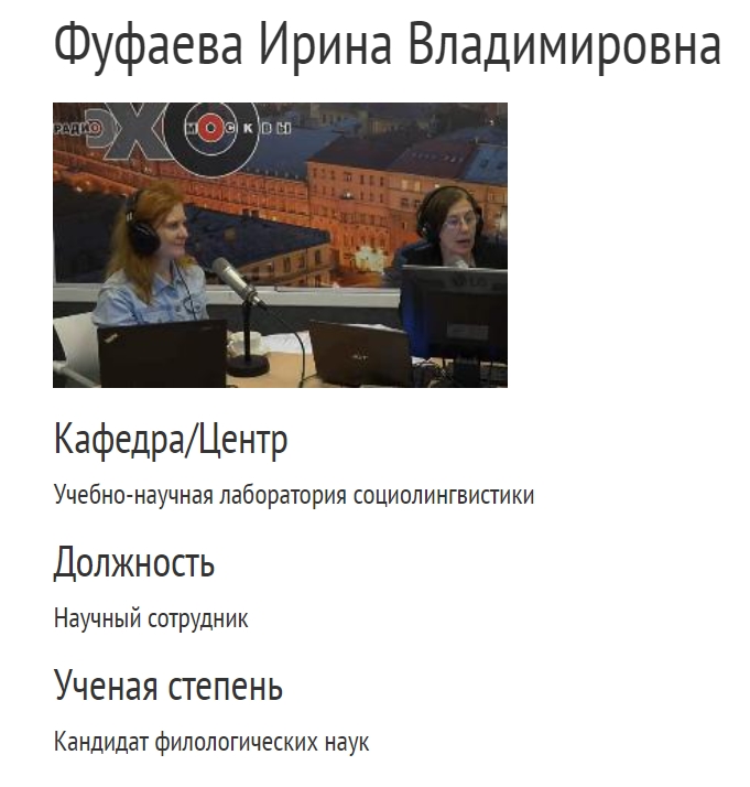 Если бы я, как пел БГ, купил «себе у Бога копирайт на русский язык», то самым расхожим наименованием профессии Фуфаевой служило бы слово языковедка. Но копирайт на язык нигде не продаётся и не выдаётся. Хотя служители языковой вертикали, о которой ниже, часто пытаются убедить нас в обратном. Так или иначе, языковедка пока не стала нормой жизни. Представительниц професии Фуваевой обычно называют лингвист. Реже лингвистка.